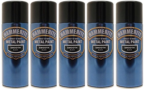 5x Hammerite Smooth Black Metal Spray Paint 400ml x5 Aerosol Tins L M