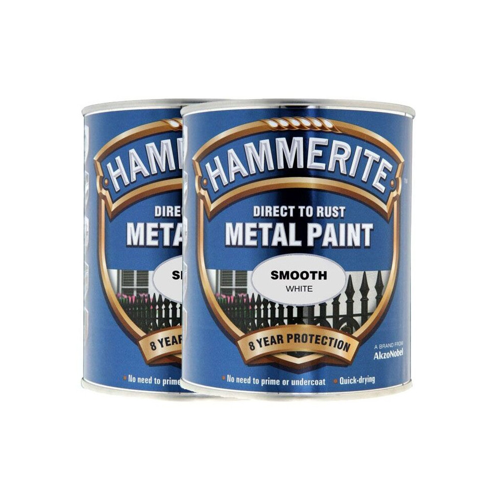 Hammerite Smooth White Paint 250ml Direct To Rust Metal Quick Drying Protection