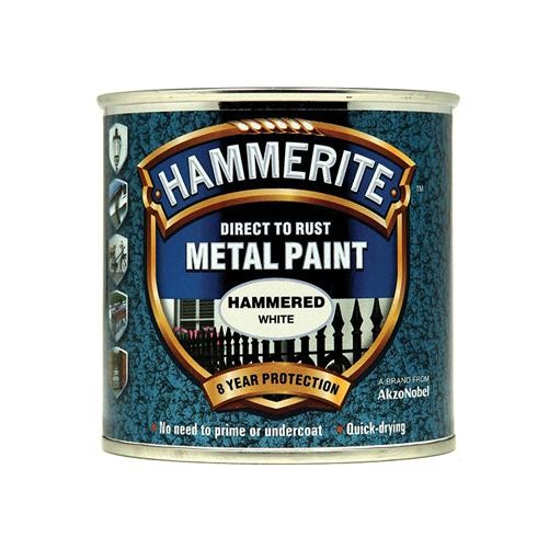 Hammerite Direct To Rust Hammered Finish Metal Paint White 250Ml HMMHFW250