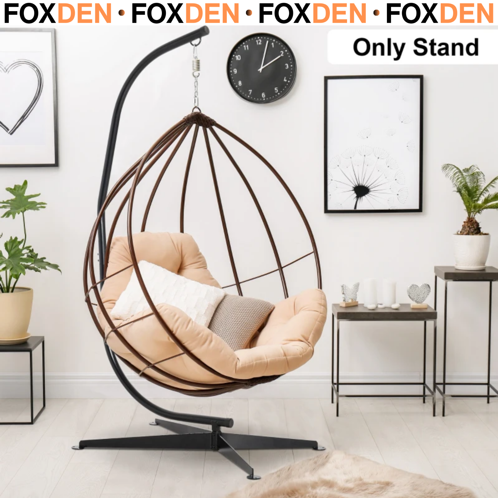 vidaXL Hanging Chair with Stand and Cushion Beige Steel