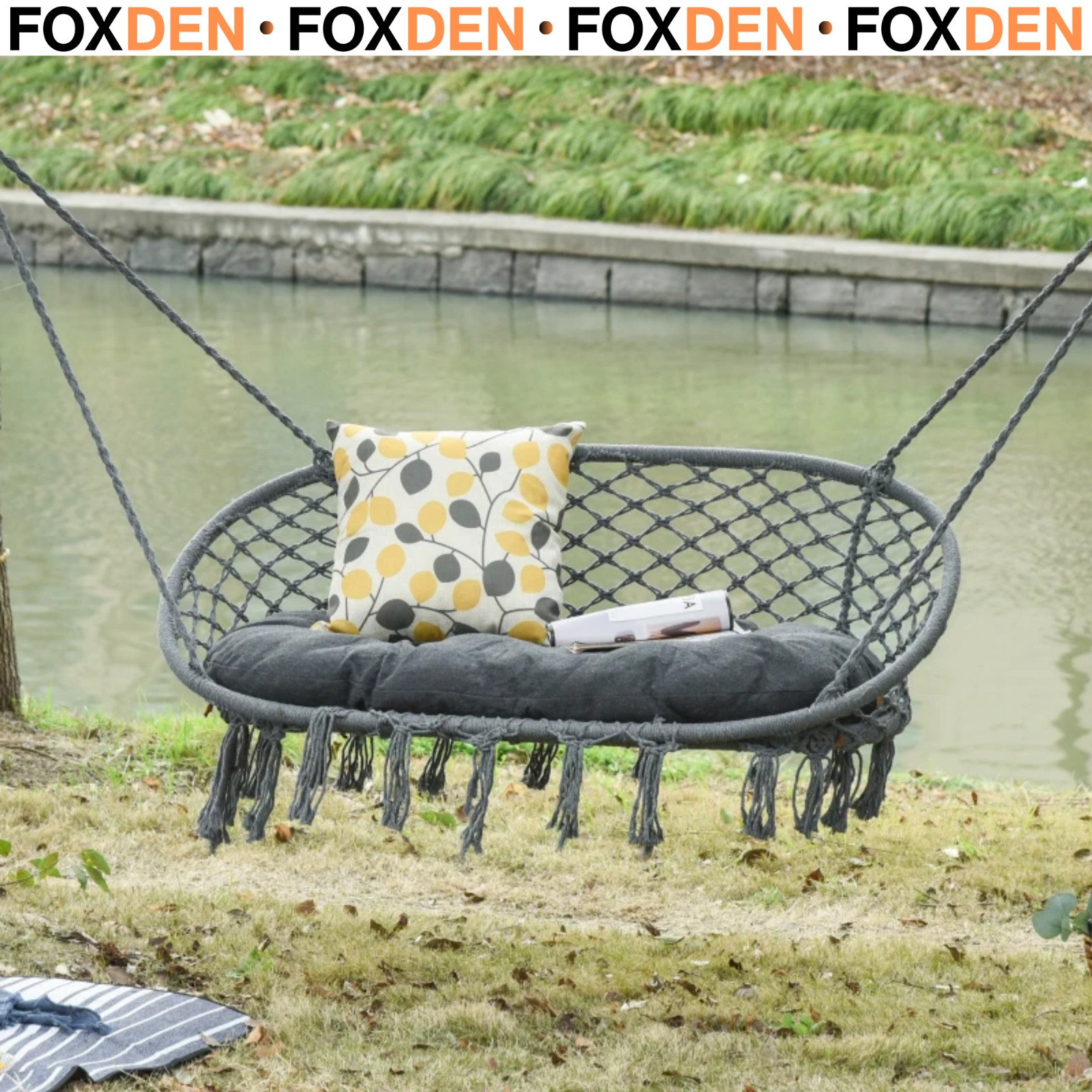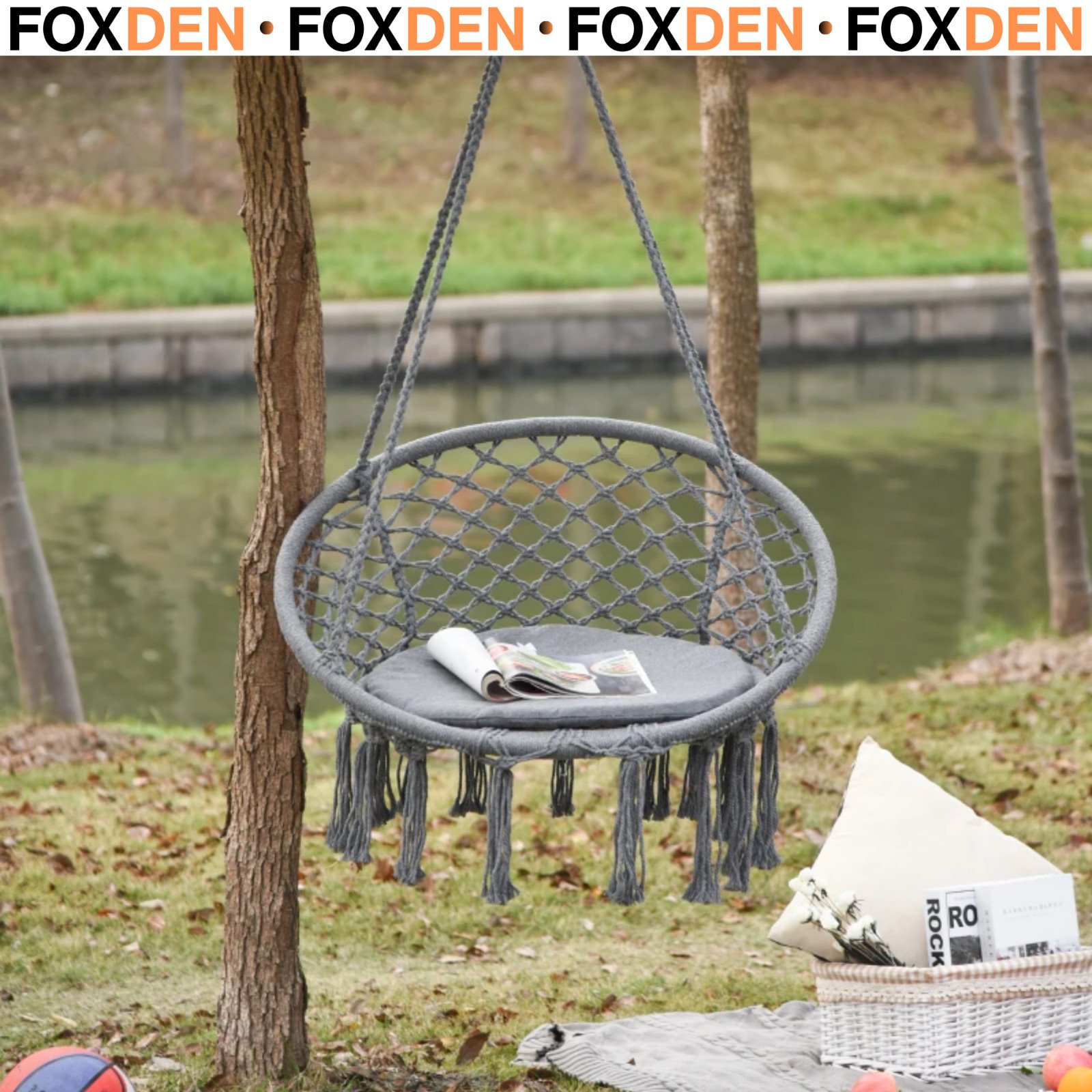 Hammock Hanging Chair Rope Boho Style Swing with Soft Padded Cushion Dark Grey
