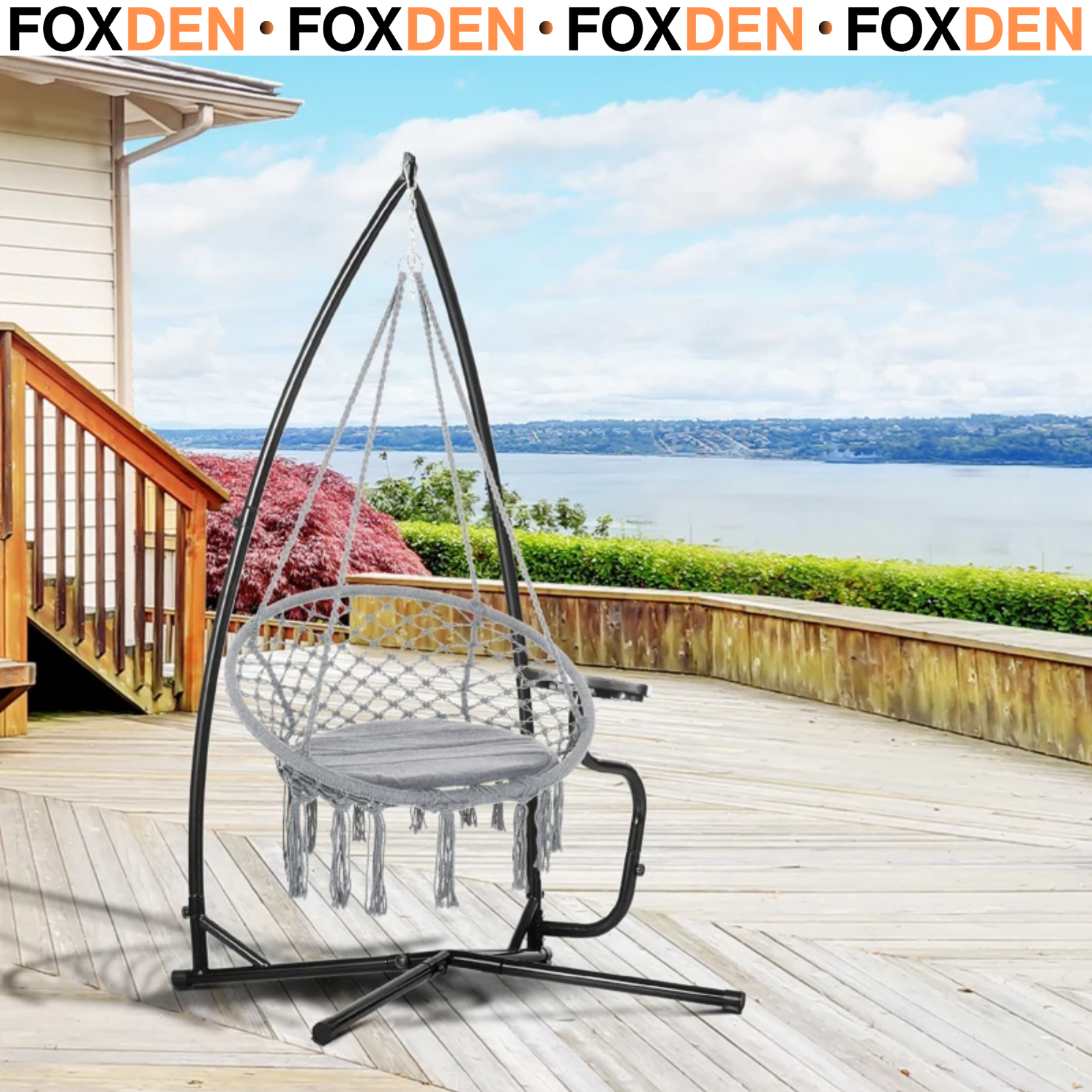 Macrame Hanging Chair Hammock Swing with Padded Cushion & 4-Long Strings Grey