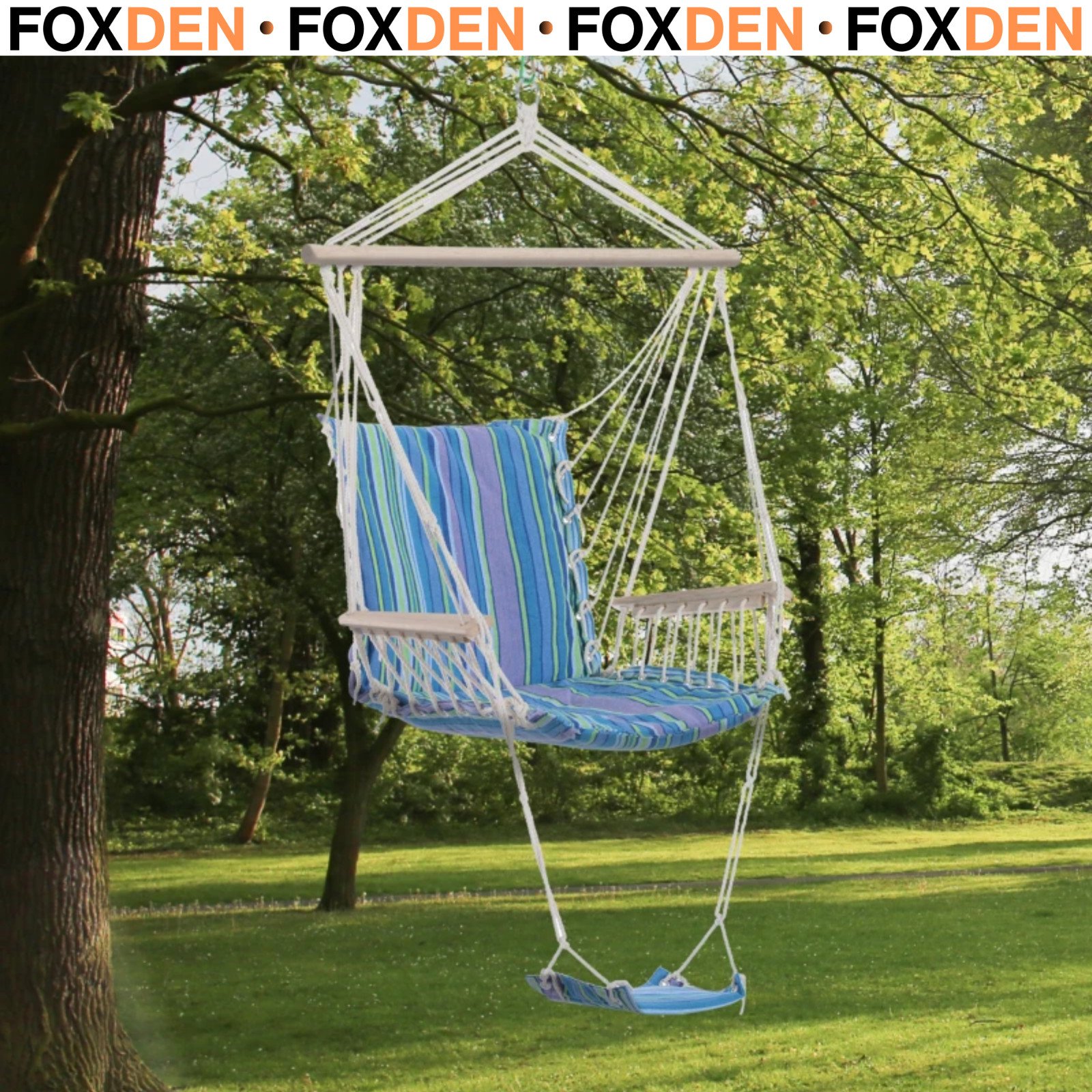 Hammock Hanging Chair with Soft Padded Cushioned Seat, Backrest & Armrests Blue