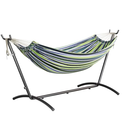 Mondeer Hammock with Stand Double Camping Outdoor Garden Fabric Hammock with Metal Frame with Carrying Bag and Accessories, 270kg Load Capacity, for Camping Travel Patio, Blue