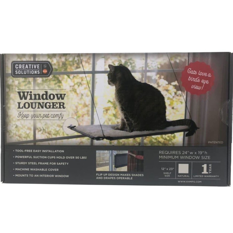 K&H Pet Products Window Lounger Cat Window Perch for Large Cats Sturdy Kitty Sill Window Hammock Bed Steel Frame Sturdy Suction Cups Washable Shel