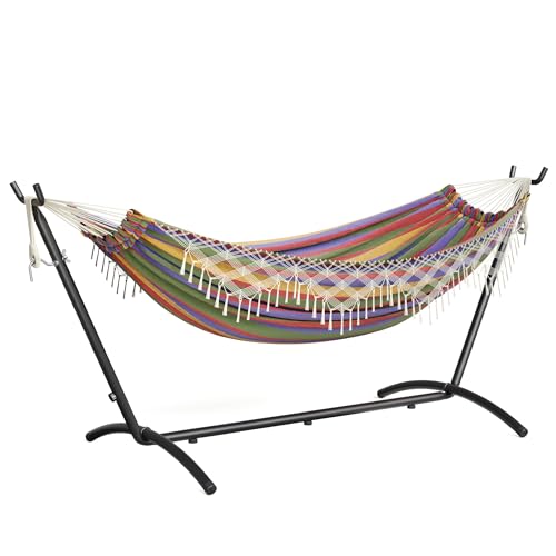Mondeer 2 Person Hammock with Stand, Bohemian Style Portable Garden Double Hammock, Metal Frame Adjustable, Suitable for Outdoor Terraces, Patios and Gardens, up to 270kg, Colorful
