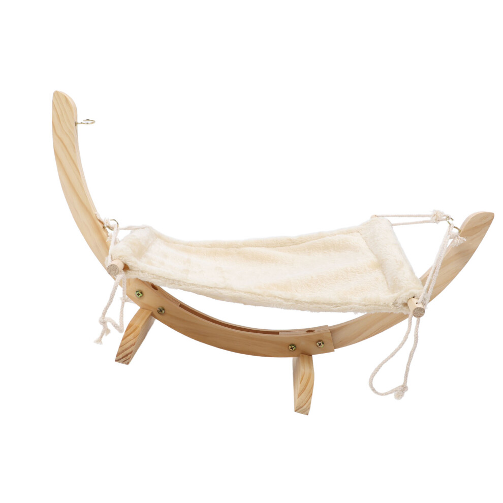Wooden Cat Hammock with Pine Frame, Elevated Pet Bed, Beige Short Plush