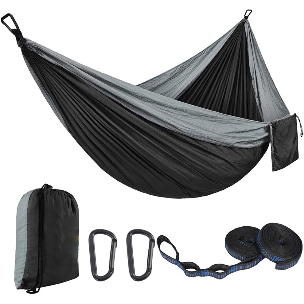 Hammock with Frame, Parachute Cloth, Double Person Camping Swing, 300 x 200 cm, Ultra Light, Grey Black