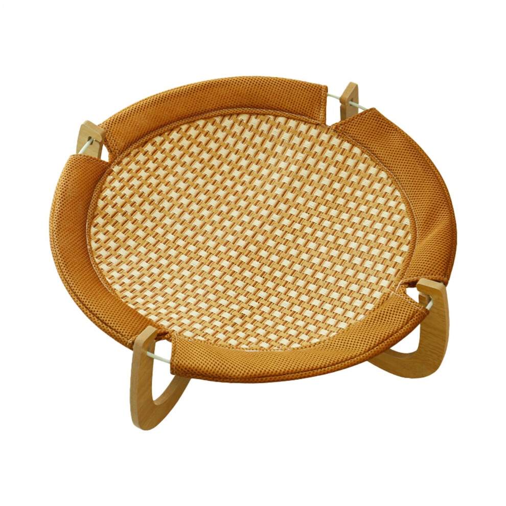 Rattan Pet Bed - Cooling Raised Cat Hammock with Wooden Frame, Breathable Design, Scratch-Resistant, Lightweight Summer Pad