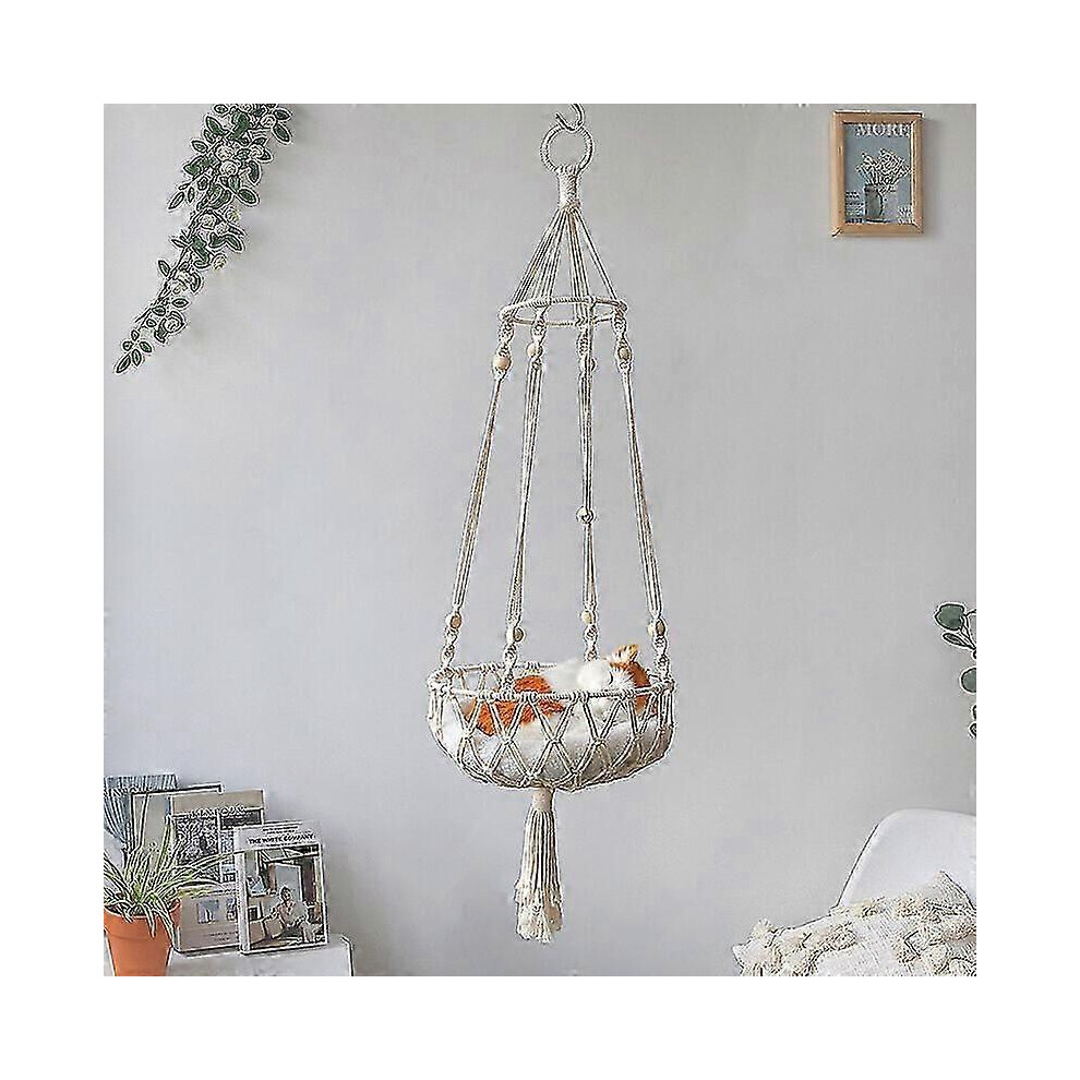 (As show, One size) Macrame Cat Hammock - Wooden Frame with Woven Cotton Rope (30*100cm)