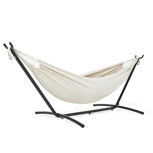 Hammock with Stand, Double Cotton Hammock with Spreader Bars, Space-Saving and Adjustable Steel Stand Perfect for Garden Camping Travel Backyard,