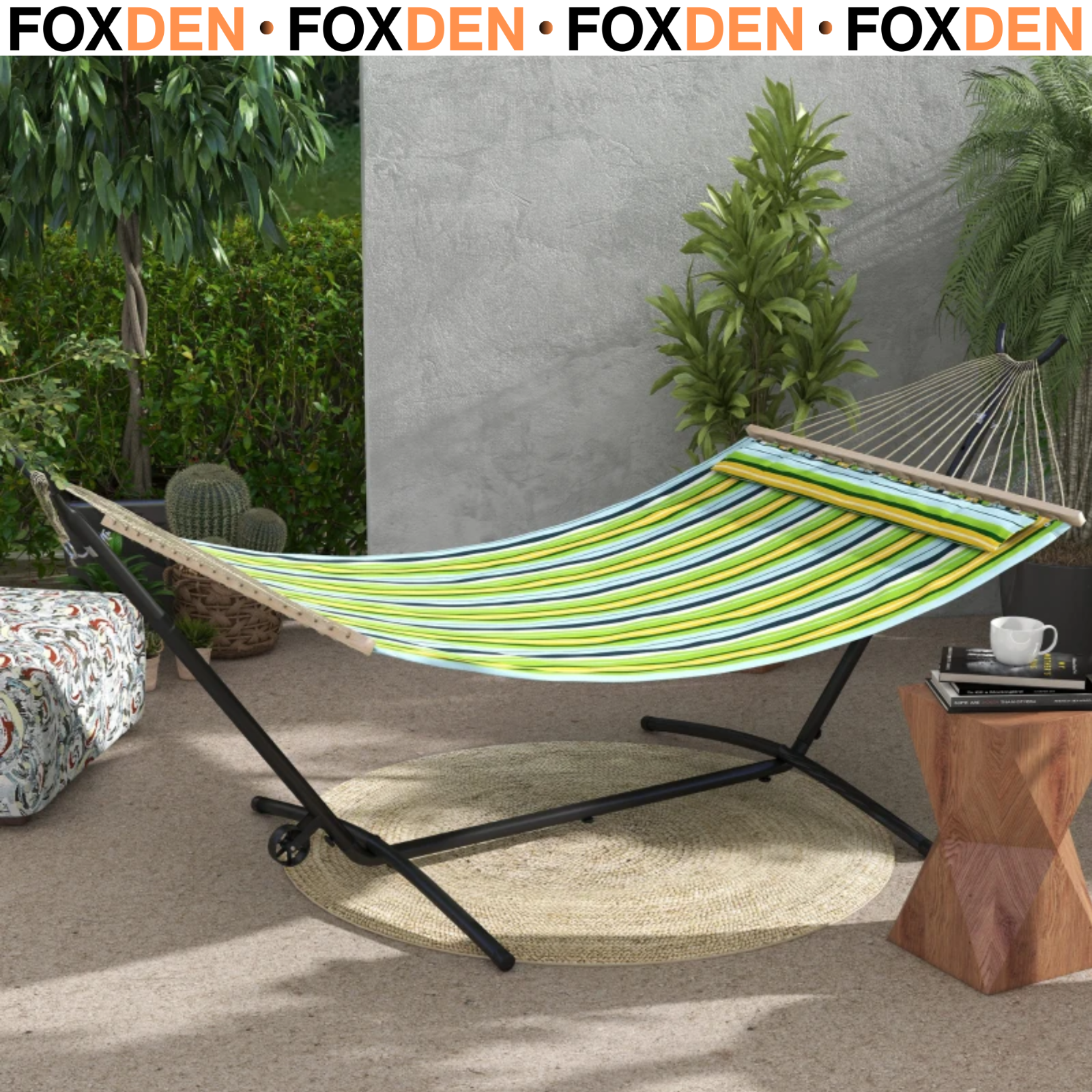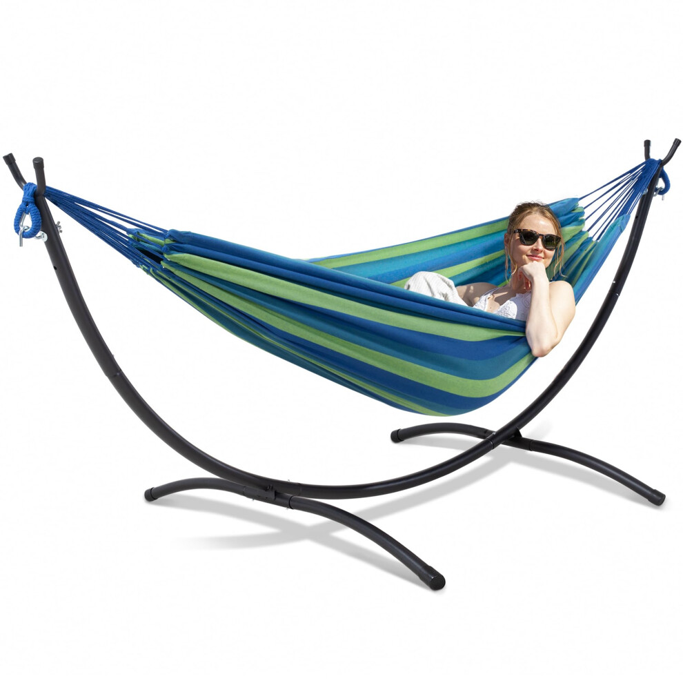 Outdoor Hammock with Stand, Double Hammock with Stand for Outside, Blue Green Stripes