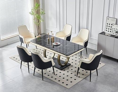 Emporium Furniture Dining Set 6 Seater Rectangle Dining Table 1.8m Black Marble Top with 6/8 Dining Chairs Sets (Hampton Dining Table + 6 verona chairs, 180x90x75)