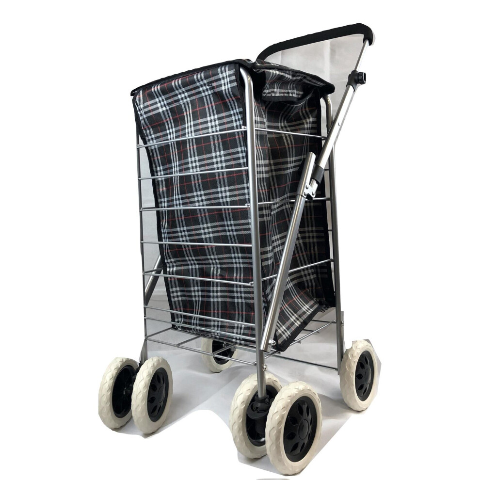 (Black Tartan) Hampton&Stewart 6 Wheel Foldable Shopping Trolley
