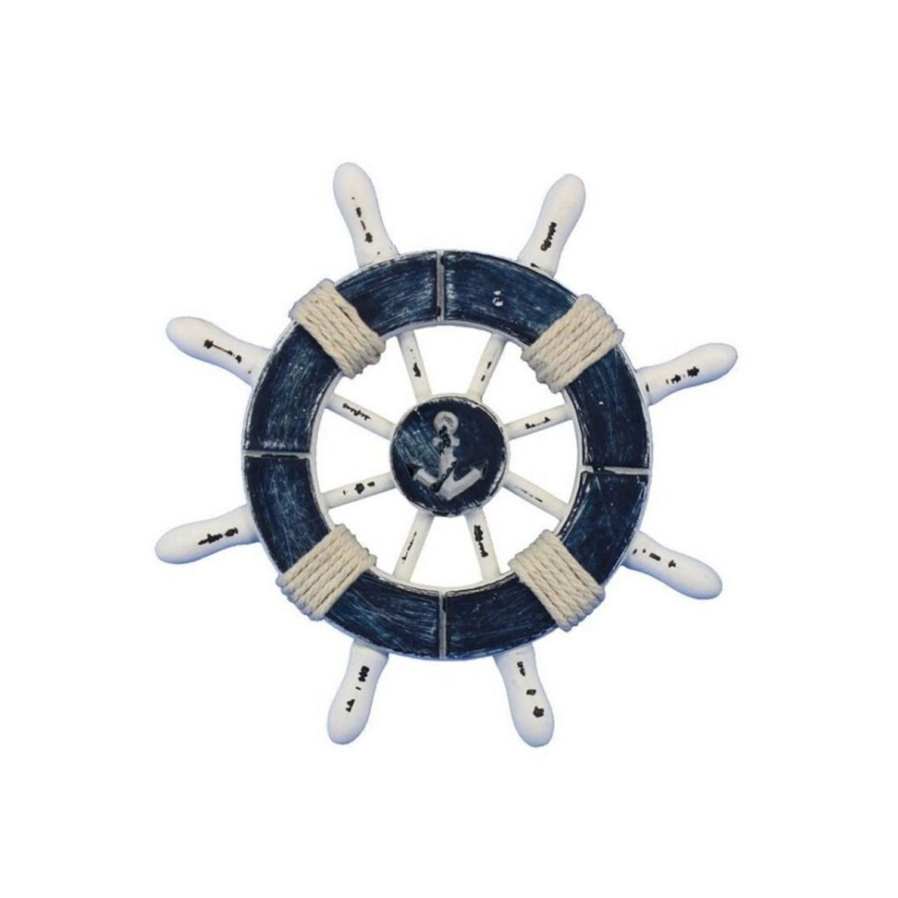 Hampton Nautical SW-6-108-anchor-NH Rustic Dark Blue and White Anchor 6""-Ships Steering Wheel Decoration