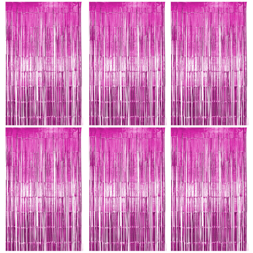 Hampton Distribution 6 Pack Pink Fringe Backdrop Pink Tinsel Backdrop Curtains Decorations for Baby Showers Birthday Holidays Parties & More