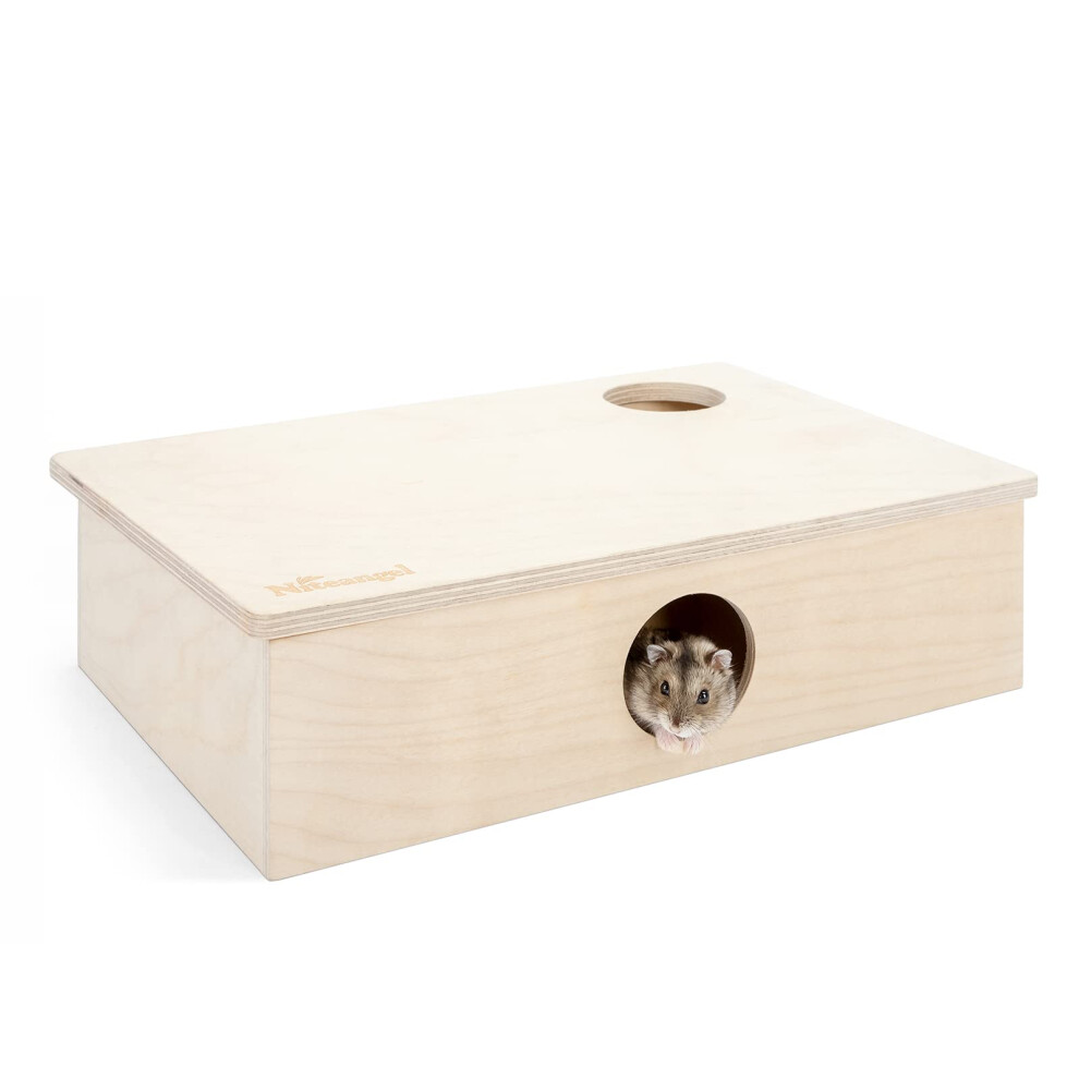 Eyksta Wooden Hamster House, Guinea Pig House Hamster Hideout Cage Décor for Syrian Hamsters Dwarf Hamsters Gerbils Chinchilla Rat (3 chambers, 22.5