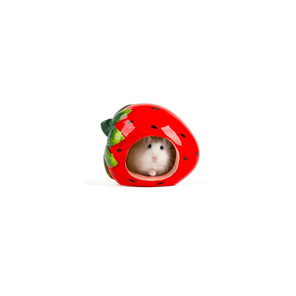 Ceramic Hamster House Cartoon Cute Fruit Shape Hamster Cave Summer Cool Off Winter Keeping Warm Small Animal Nest Habitat (strawberry)