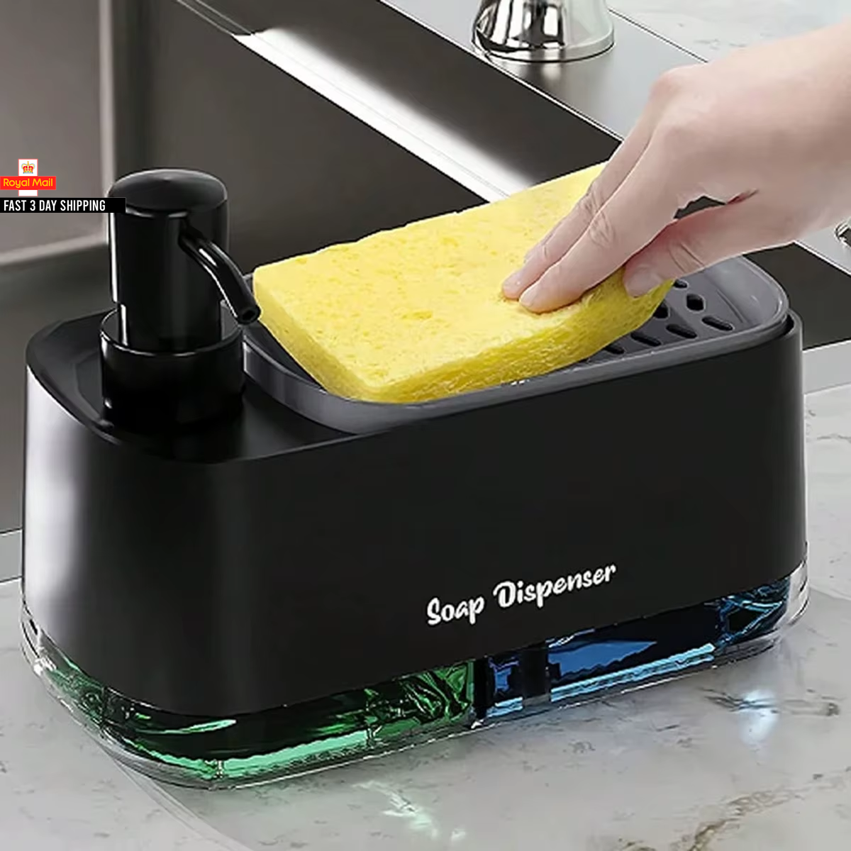 Hand and Dish Soap Dispenser Set Detergent Dispenser Sponge Holder 2-In-1 Counte