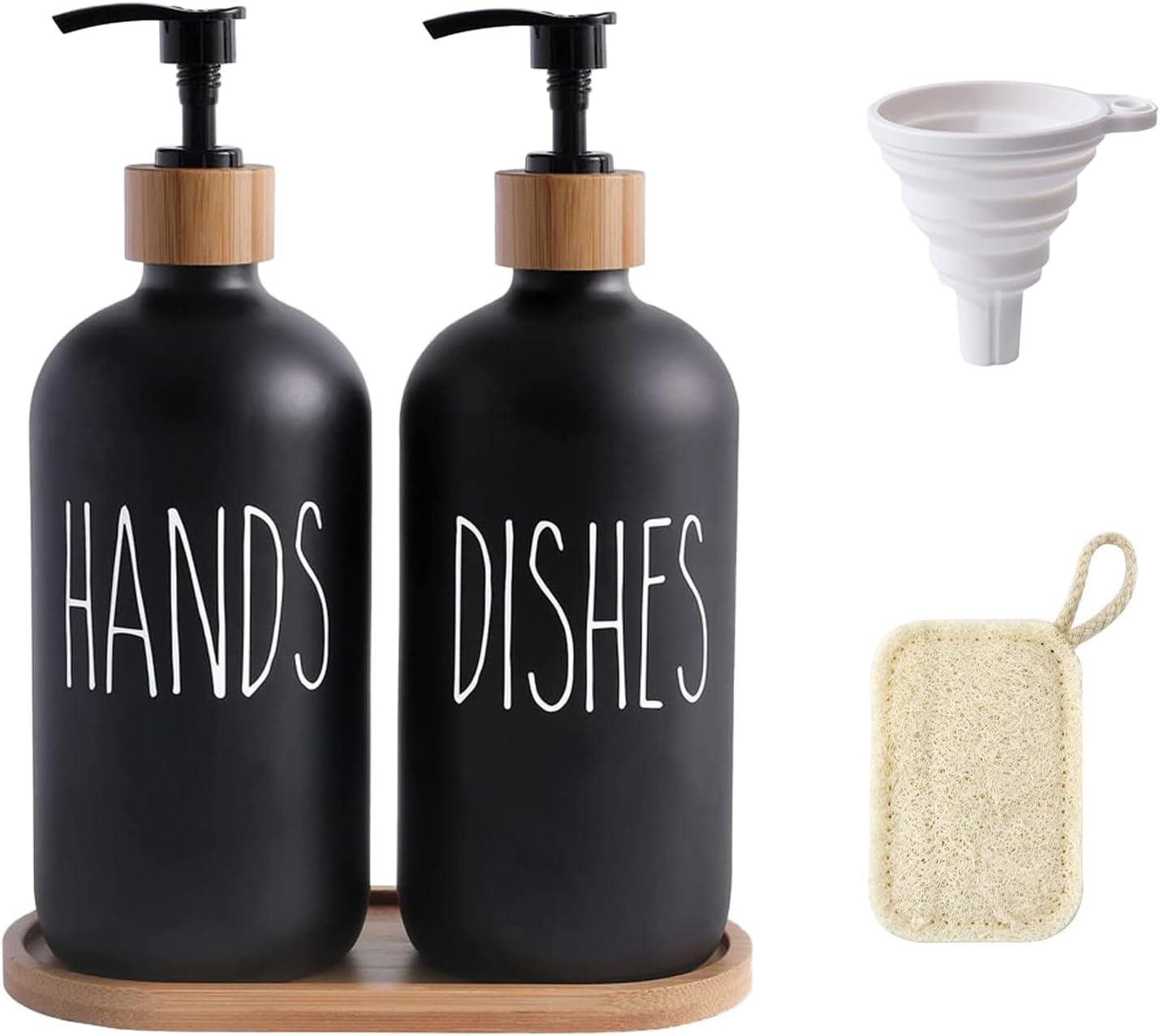 Luxspire Kitchen Soap Dispenser Set - 17oz Hand and Dish Soap Dispenser Set with Fast Drying Tray, Glass Bottle with Waterproof Labels, Kitchen Sink Organizer, Bathroom Countertop Organizer, Black