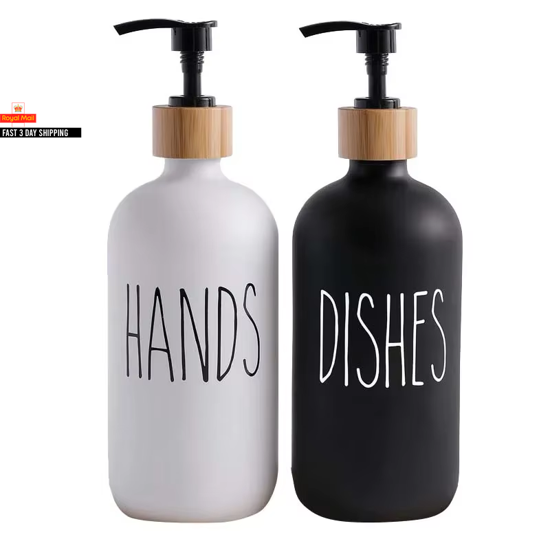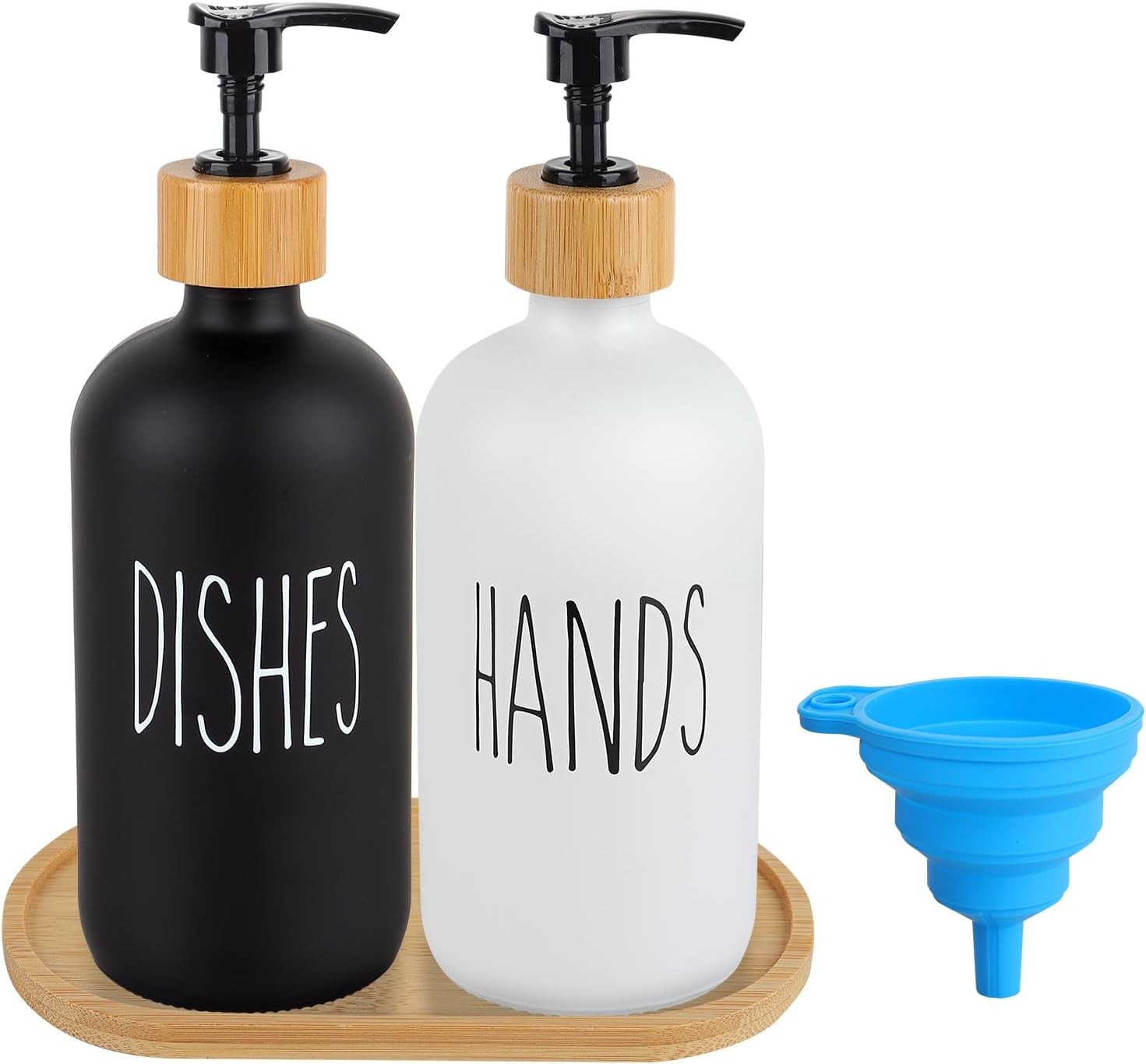 2 Pack Hand and Dish Soap Dispenser Set, 500ML Glass Dish Soap Dispenser Refill