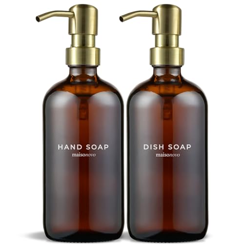 MAISONOVO Hand and Dish Soap Dispenser Set | 16.9 fl oz Amber Glass Gold Pump x 2