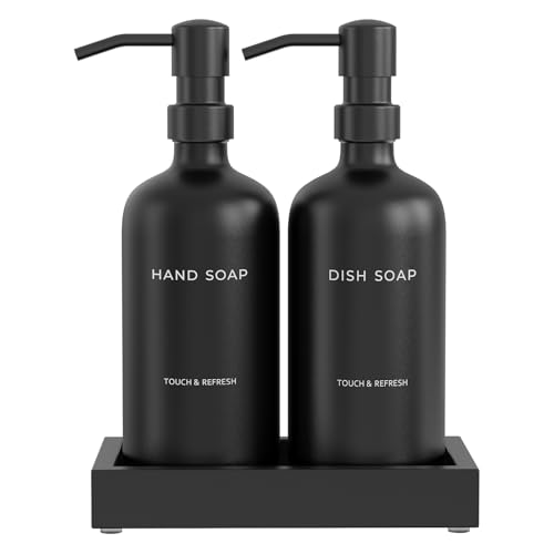 Kitchen Soap Dispenser Set with Tray - Hand and Dish Soap Dispenser for Kitchen,Modern Kitchen Decor & Accessories. (Black)