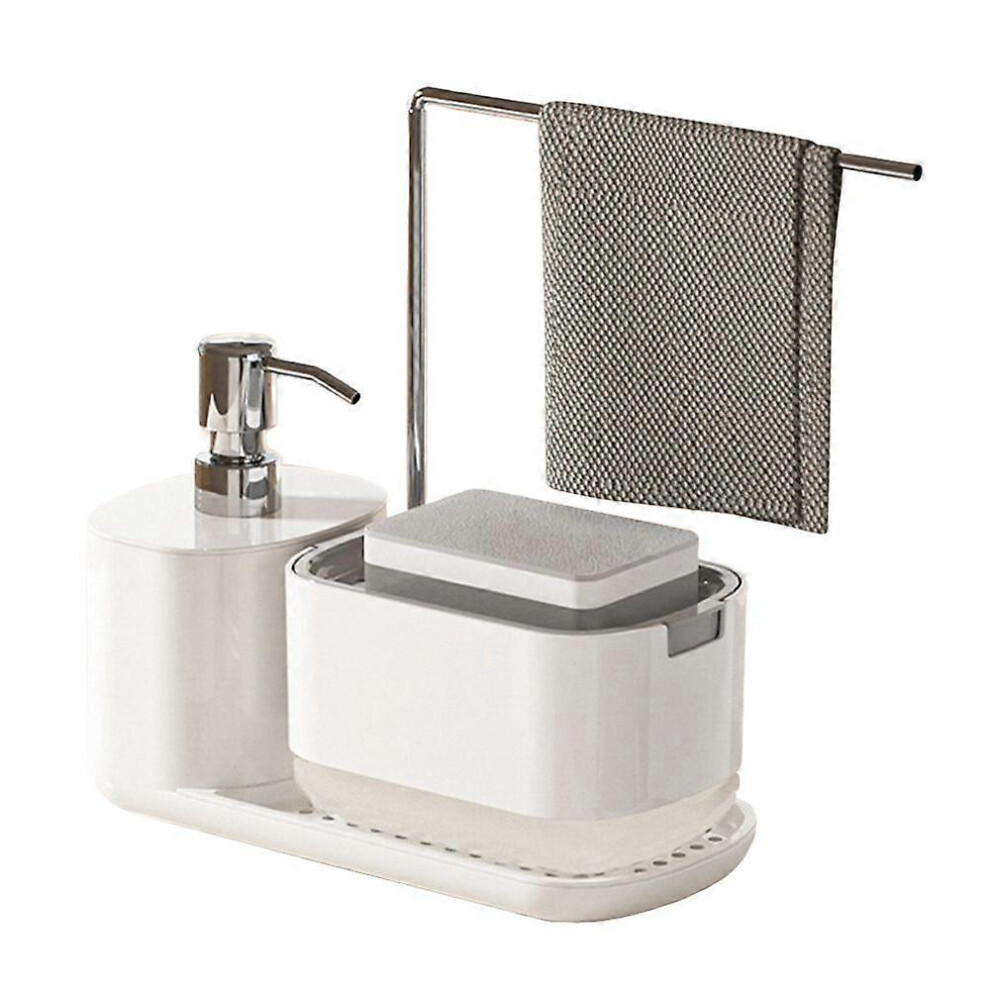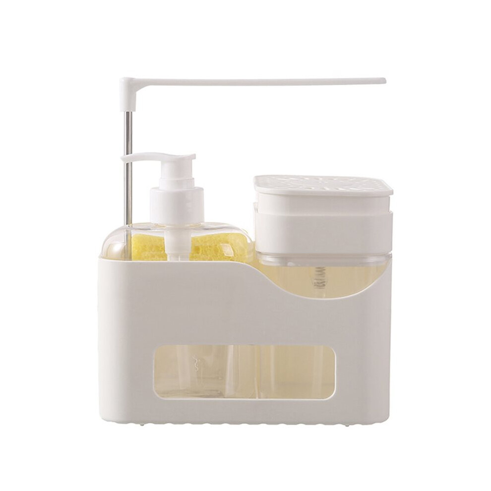 (As show, One size) Hand and Dish Soap Dispenser Set, Soap Dispenser with Sponge Holder and Rag Holder Push-Type Liquid Box Organizer for Home