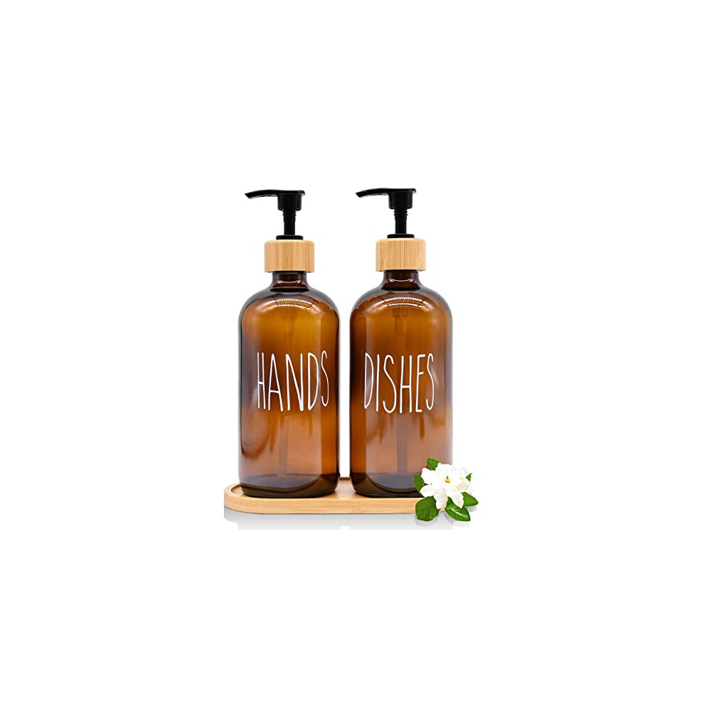 Amber Glass Hand and Dish Soap Dispenser Set by Brighter Barns - Kitchen Soap D