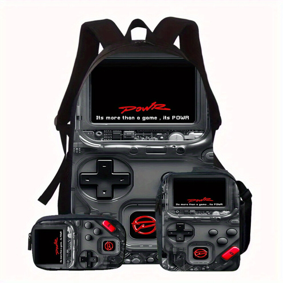 (3pc Set) Game Consoles Backpack Set Comes With Adjustable Shoulder Straps, Polyester Lining, Zipper Closure, Hand Wash, With Applique And Print Detai