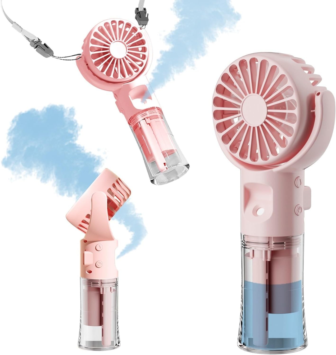 HandFan Handheld Fan Misting Hand Held Fan Rechargeable Battery Operated Portable 3 Speeds & 55ml Spray &180°Foldable With Metal Clip USB Personal Water Fan For Travel Camping Outdoor Women