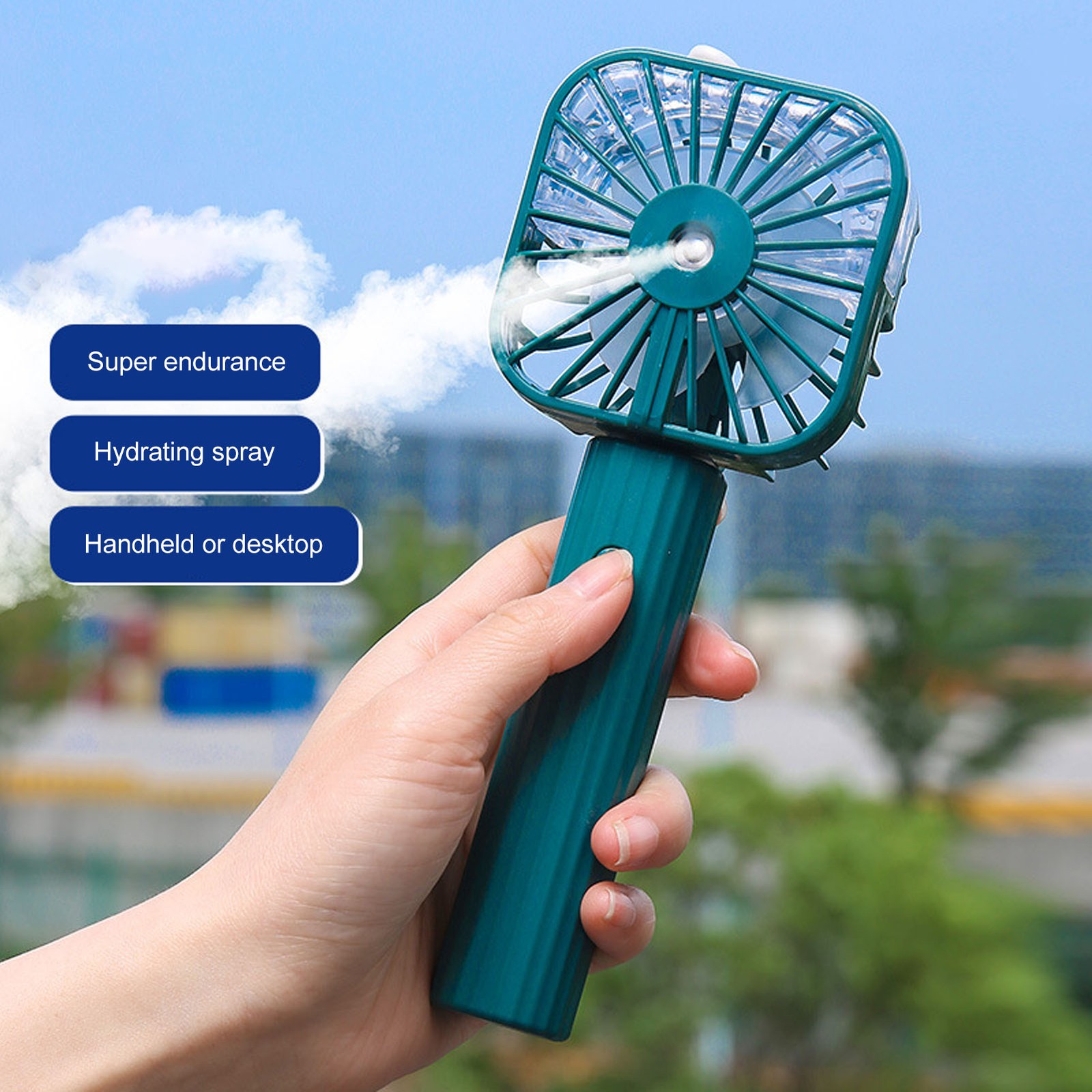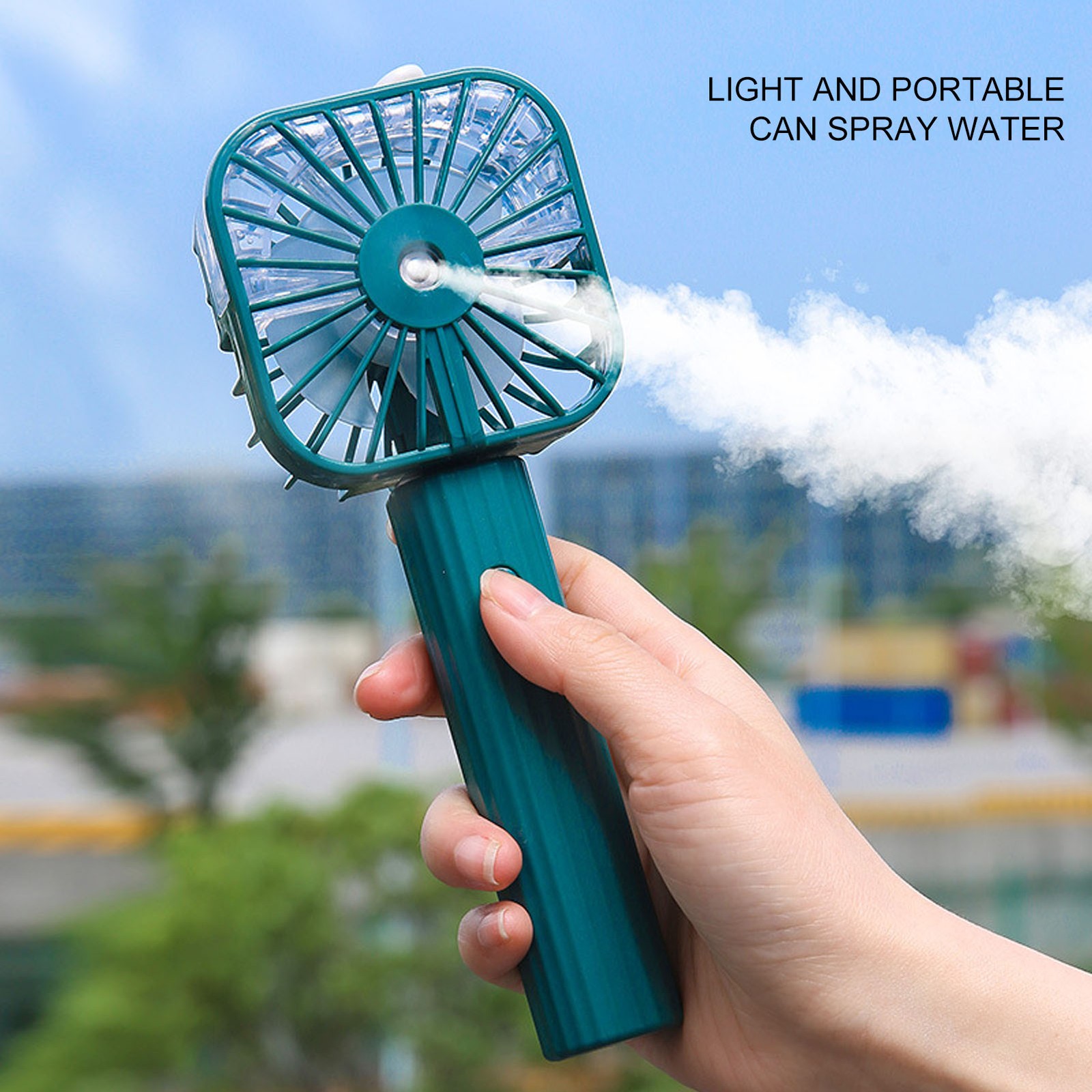 (Green)Hand Held Misting Fan Portable Battery Operated USB Rechargeable AM