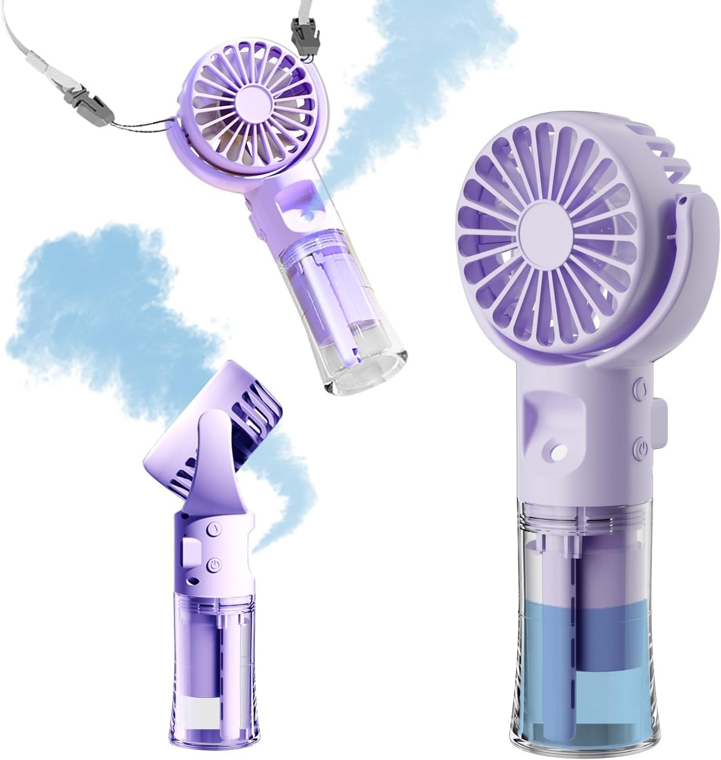 HandFan Hand Held Fan Misting Handheld Rechargeable Fans Battery Operated Portable 3 Speeds & 55ml Spray &180°Foldable With Metal Clip USB Personal Water Fan For Travel Camping Outdoor Women