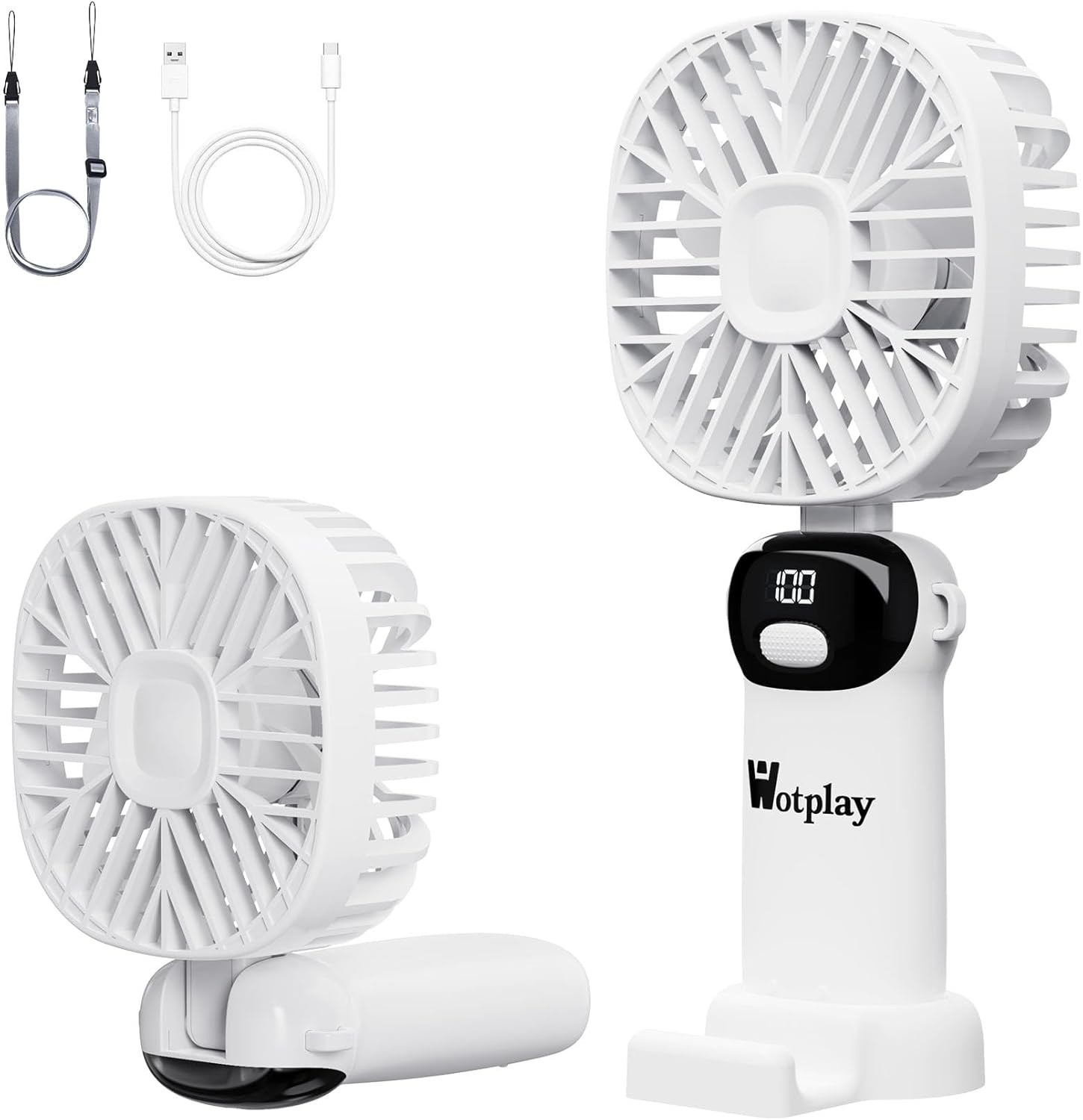 Hand Held Fan,Portable Handheld USB Rechargeable Fans with 5 Speeds,Battery Operated Mini Fan Foldable Desk Desktop Fans with LED Display for Home Office Bedroom Outdoor Travel (White)