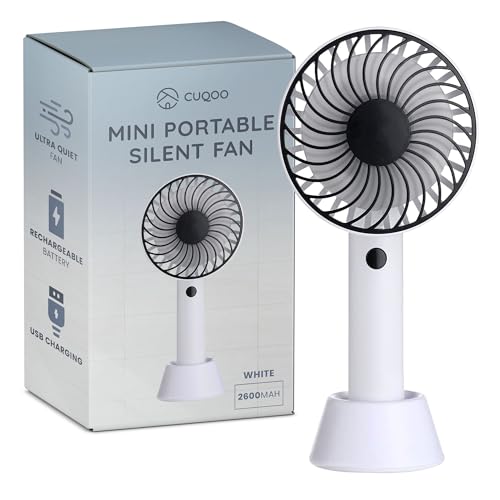 CUQOO Hand Held USB Fan – Rechargeable Mini Desk Fan – Portable Handheld Battery Operated with 3 Speeds, Silent Cooling, 180° Rotation & Removable Stand for Home Travel Outdoor (Black/White)