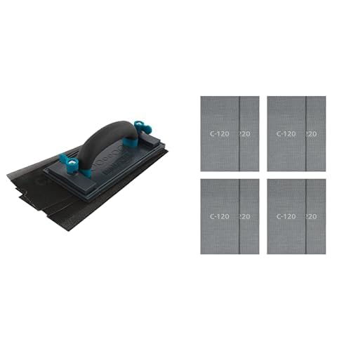 Bundle of wolfcraft Hand-Held Sander Set, 5 Pcs. I 8722000 I + wolfcraft Easy-Fix Sanding Pad Set for plasterboard, 115 x 280 mm, Grain 120/220, 16 pcs. I 8644000 I