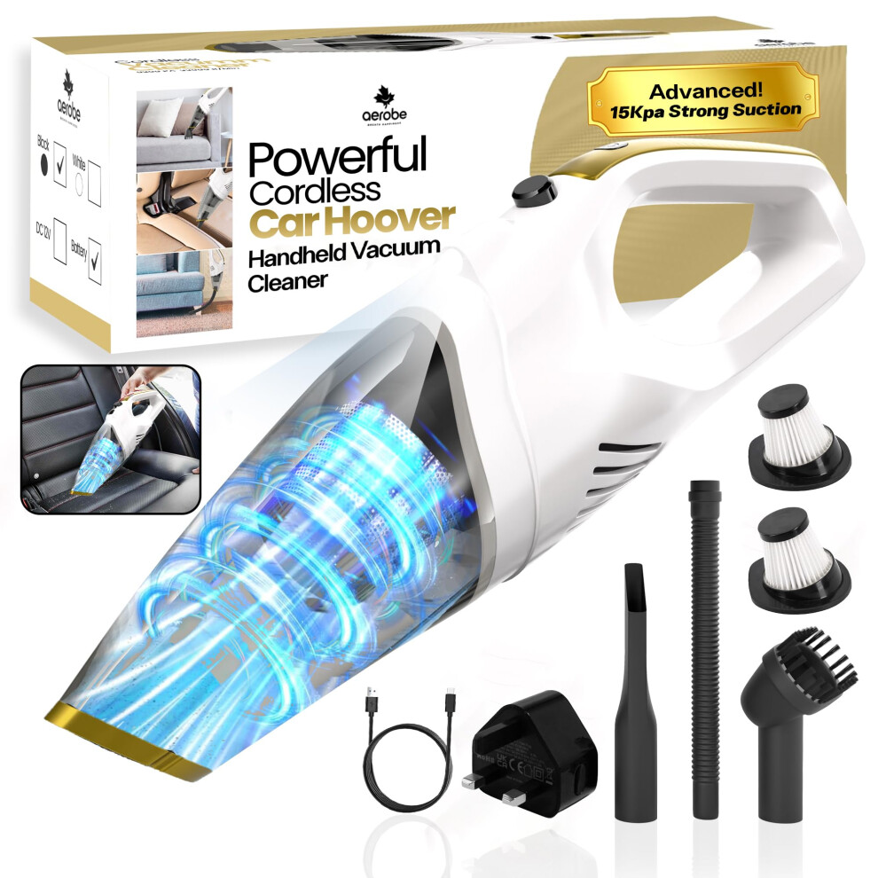 Aerobe HandHeld Vacuum Cleaner - ADVANCED 15000 PA Car Hoovers Cordless Powerful, Strong Suction Car Vacuum Cleaner For Home Mini Hoover With Led Lig