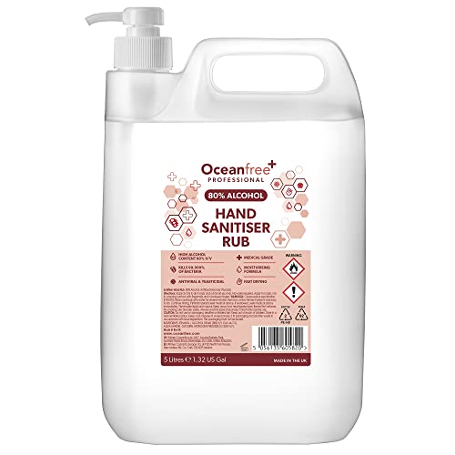 80% Alcohol Hand Sanitiser Gel Liquid Rub with Pump - 5L Litre - Kills 99% Bacteria, Germs - Hand Sanitizer 5L (Single) Antibacterial Hand Gel | Perfect for Spray Dispensers and use as Rubbing Alcohol