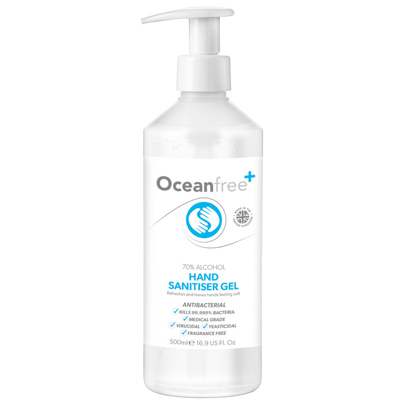 Hand Sanitiser Gel Sanitizer 70% Alcohol - 500ml Bottle - Unscented - Ocean Free