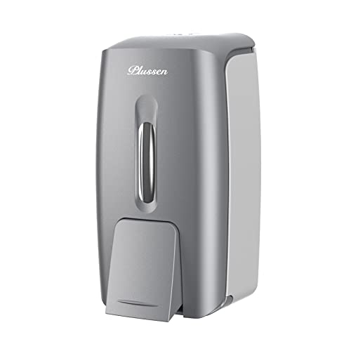 PLUSSEN Soap Dispenser Wall Mount, Adhesive No Drill Commercial Liquid Gel Hand Soap Dispenser 800ml Hand Sanitizer Dispenser for Bathroom, Silver