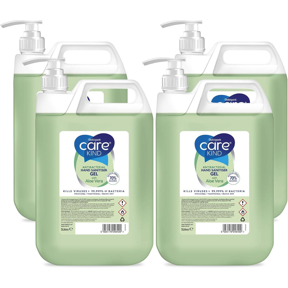 Carekind 70% Hand Sanitiser Gel 5 Litre with Aloe Vera Extract Antibacterial Hand sanitizer gel Medical Grade Alcohol With pump dispenser (Pack of 4)