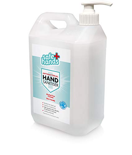 Safe Hands Hand Sanitiser Gel | Alcohol Free | 5 litre With Dispenser Pump | Antibacterial & Antiviral Non Alcohol Hand Sanitizer | 5 litre With Pump | Fully Certified | Contains Moisturisers