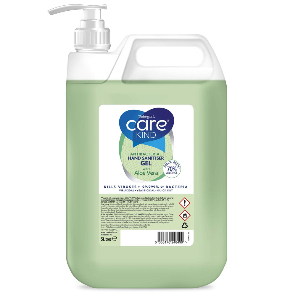 Carekind 70% Hand Sanitiser Gel 2 x 5 Litre Hand sanitizer gel made Medical Grade Alcohol, Kills Viruses & 99.99% of bacteria with pump dispenser