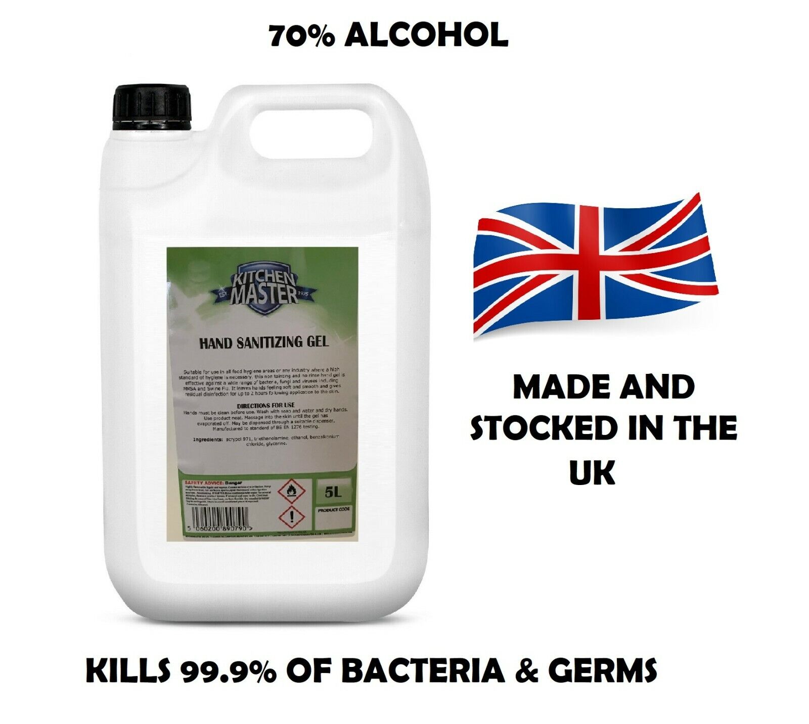 5 Litre Hand Sanitiser Gel 70% Alcohol UK Brand 5000ml Vira Safe Sanitizer 5L HandGel