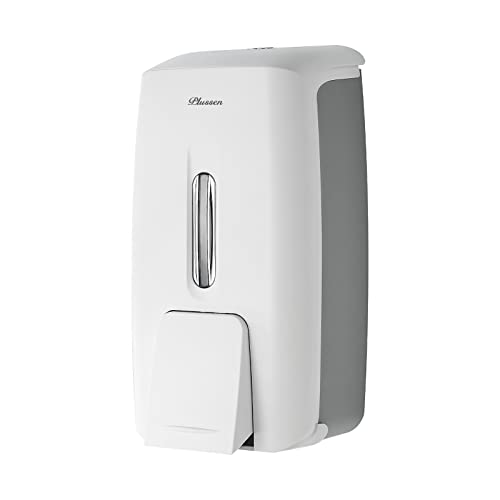 PLUSSEN Soap Dispenser Wall Mount, Adhesive No Drill Commercial Liquid Gel Hand Soap Dispenser 800ml Hand Sanitizer Dispenser for Bathroom, PN9088-White