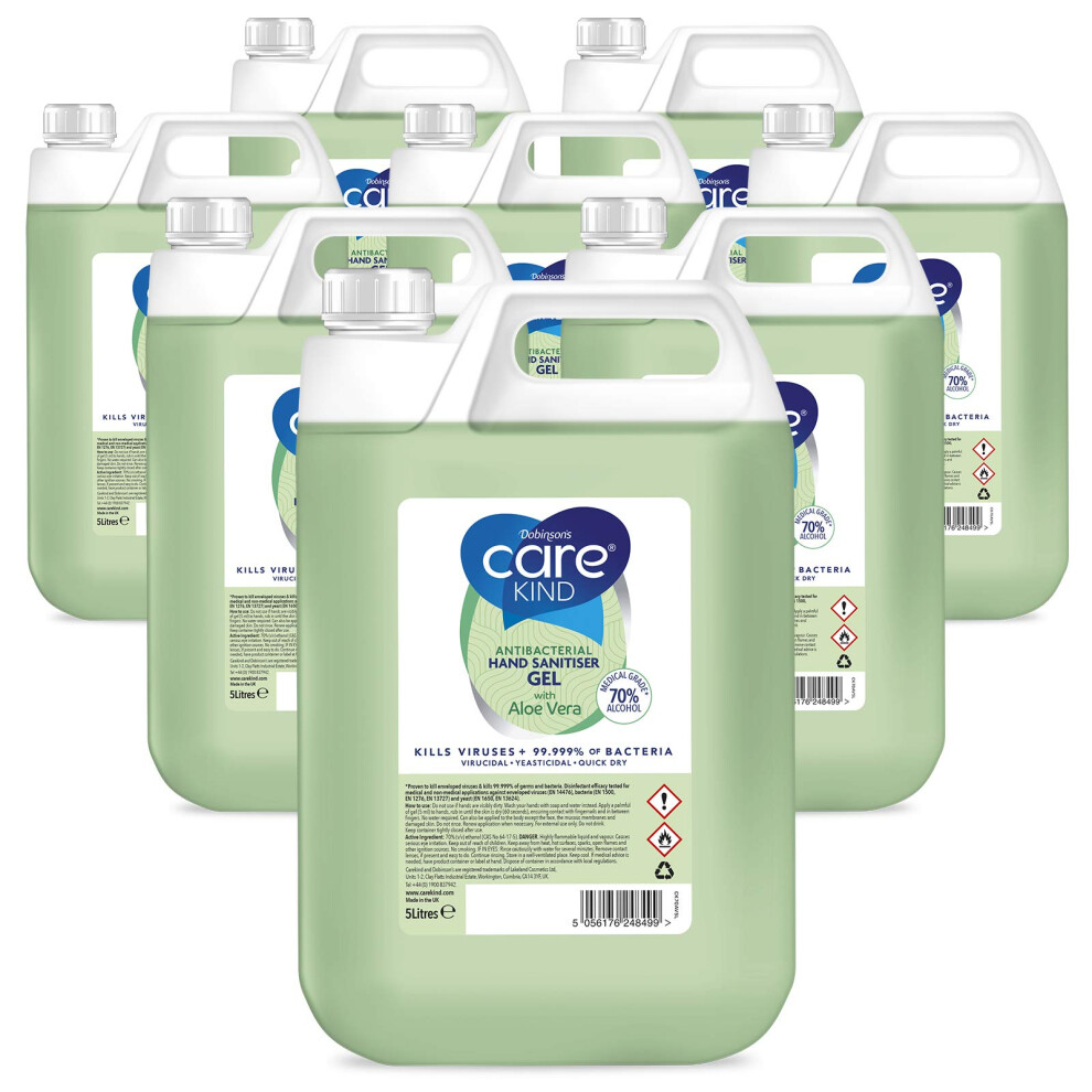 Carekind 70% Hand Sanitiser Gel 5 Litre - with Aloe Vera Extract - Antibacterial Hand sanitizer gel with Medical Grade Alcohols (Pack of 2)