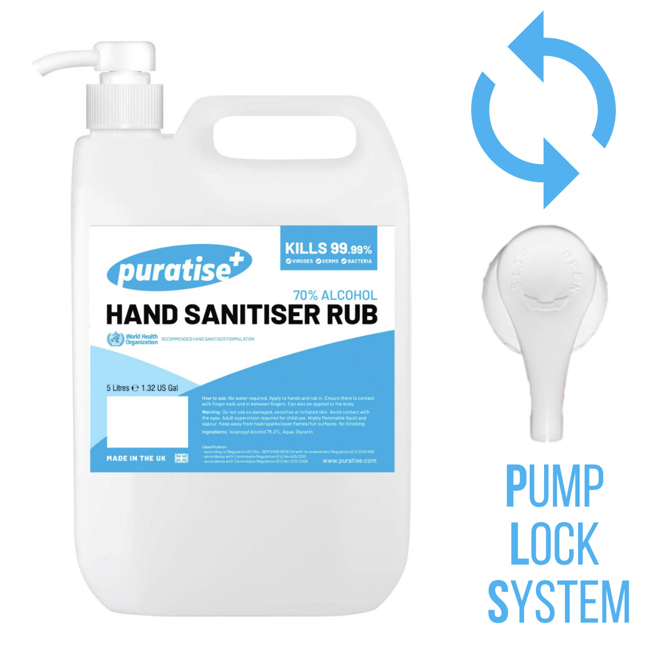 5 Litres 70% Alcohol Hand Sanitiser Gel Kills 99.9% Germs Rub & Pump Sanitizer