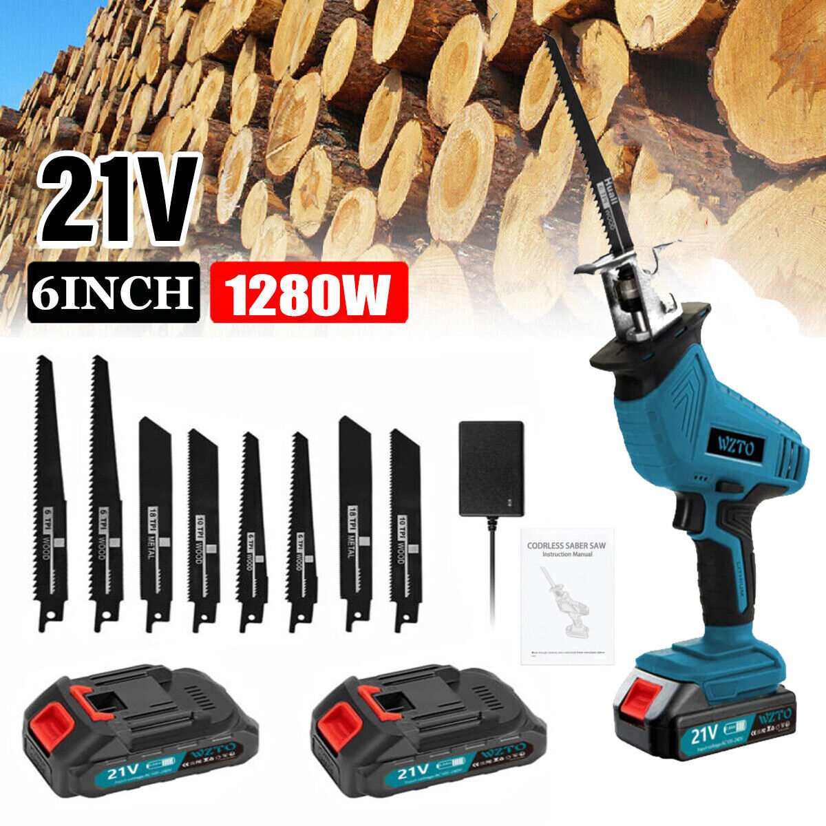 2 Batteries 21V Reciprocating Saw Cordless Hand Saw Electric Wood Metal Cutter
