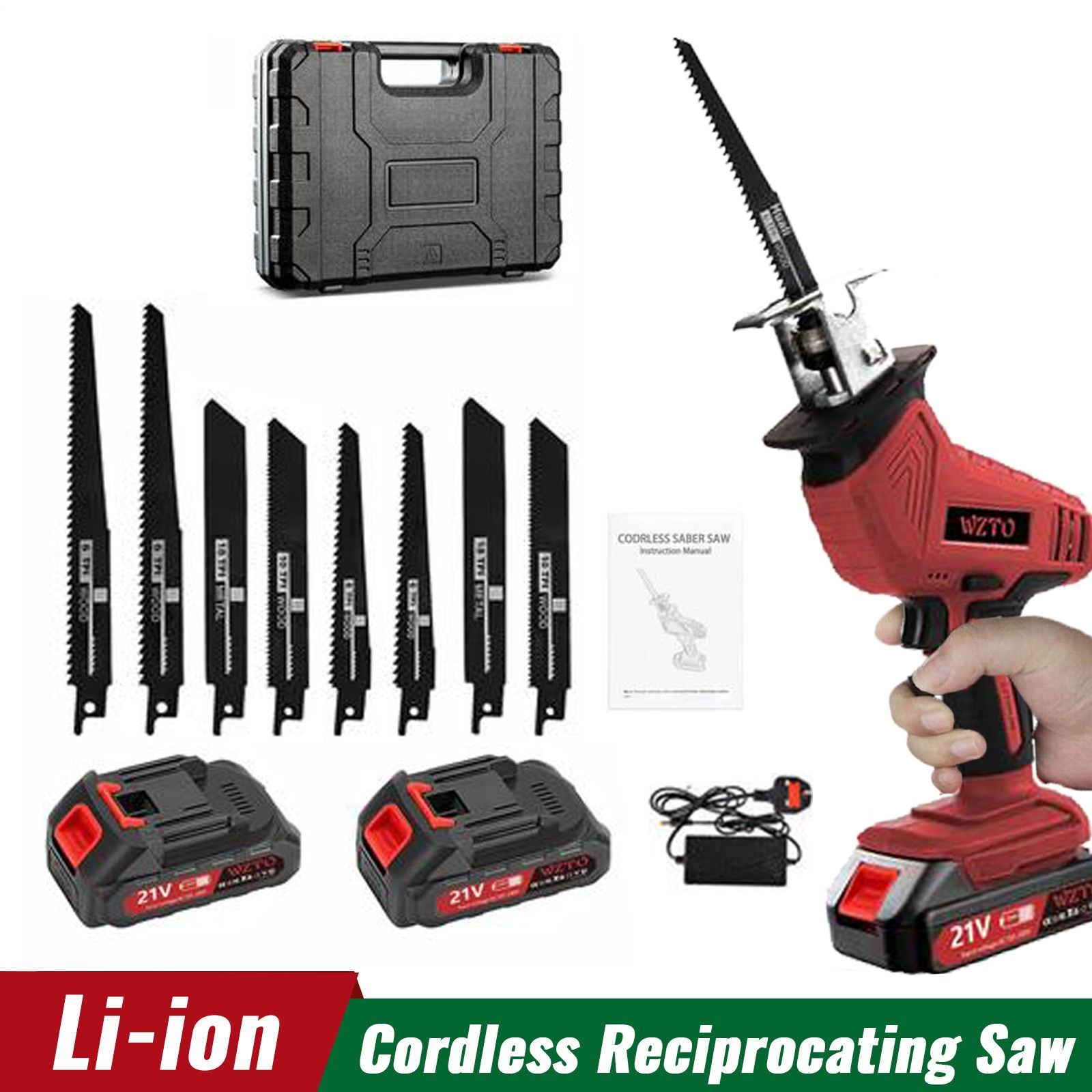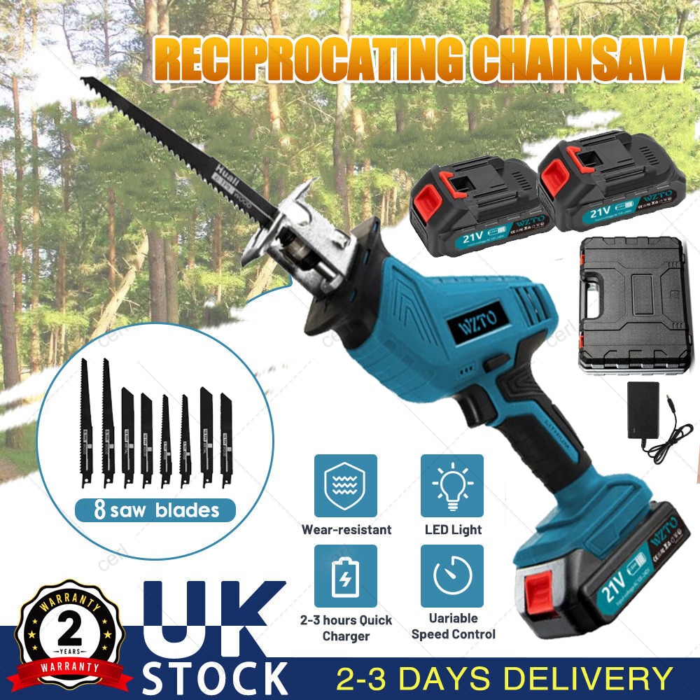 2 Battries 21V Reciprocating Saw Cordless Hand Saw Electric Wood Metal Cutter UK