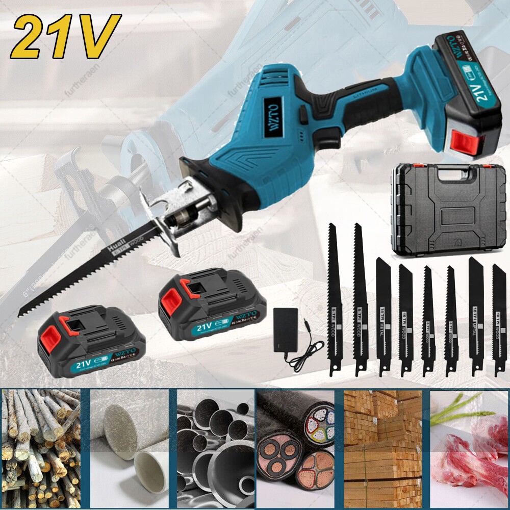 2X Battries 21V Reciprocating Saw Cordless Hand Saw Electric Wood Metal Cutter
